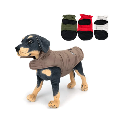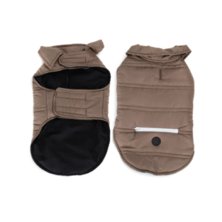 Siltināts apģērbs suņiem ar Velcro aizdari. Aizmugurējā kabata palielina uzglabāšanas vietu; Atstarojošais rāvējslēdzēja materiāls palienina drošību naktī. Aizmugurē ir pavadas atvere.
