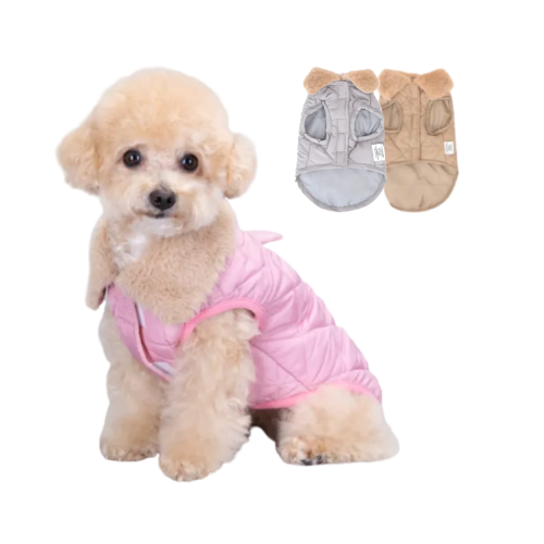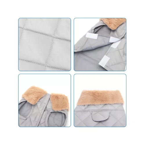 Siltināta jaka ar siltu mākslīgās kažokādas apkakli suņiem. Ar Velcro aizdari.