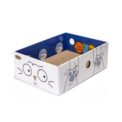 Saliekams nagu asināmais ar kaķumētru kaķiem kastes formā. Izgatavots no videi draudzīga un izturīga gofrēta kartona.