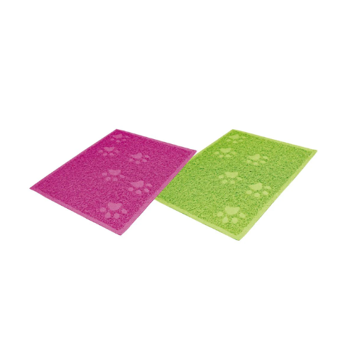 Ārējais kaķu pakaišu paklājiņš dažādās krāsās, kas jānovieto kaķu pakaišu kastes ārpusē, lai savāktu pakaišu graudus vai ļautu kaķim notīrīt ķepas.