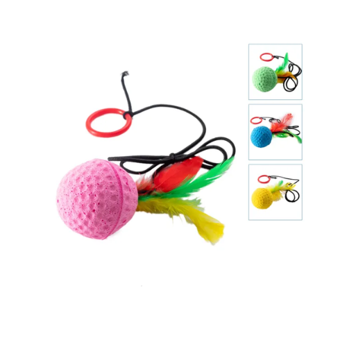 Mīksta bumbiņa kaķiem ar striķi un dabīgām spalvām.
