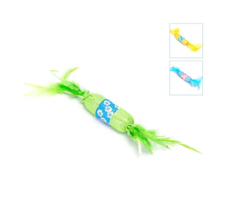 Rotaļlieta kaķiem ar kaķumētru un dabīgām spalvām.