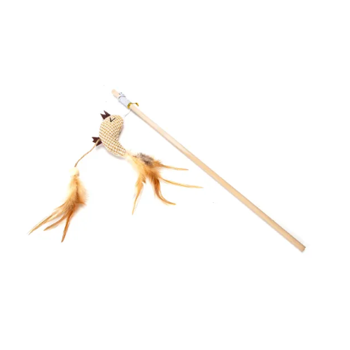 Rotaļlieta – koka makšķere kaķiem. Satur kaķumētru, lai piesaistītu kaķu uzmanību. Komplektā ietilpst zvaniņš, lai radītu vēl jautrākus skaņu efektus.